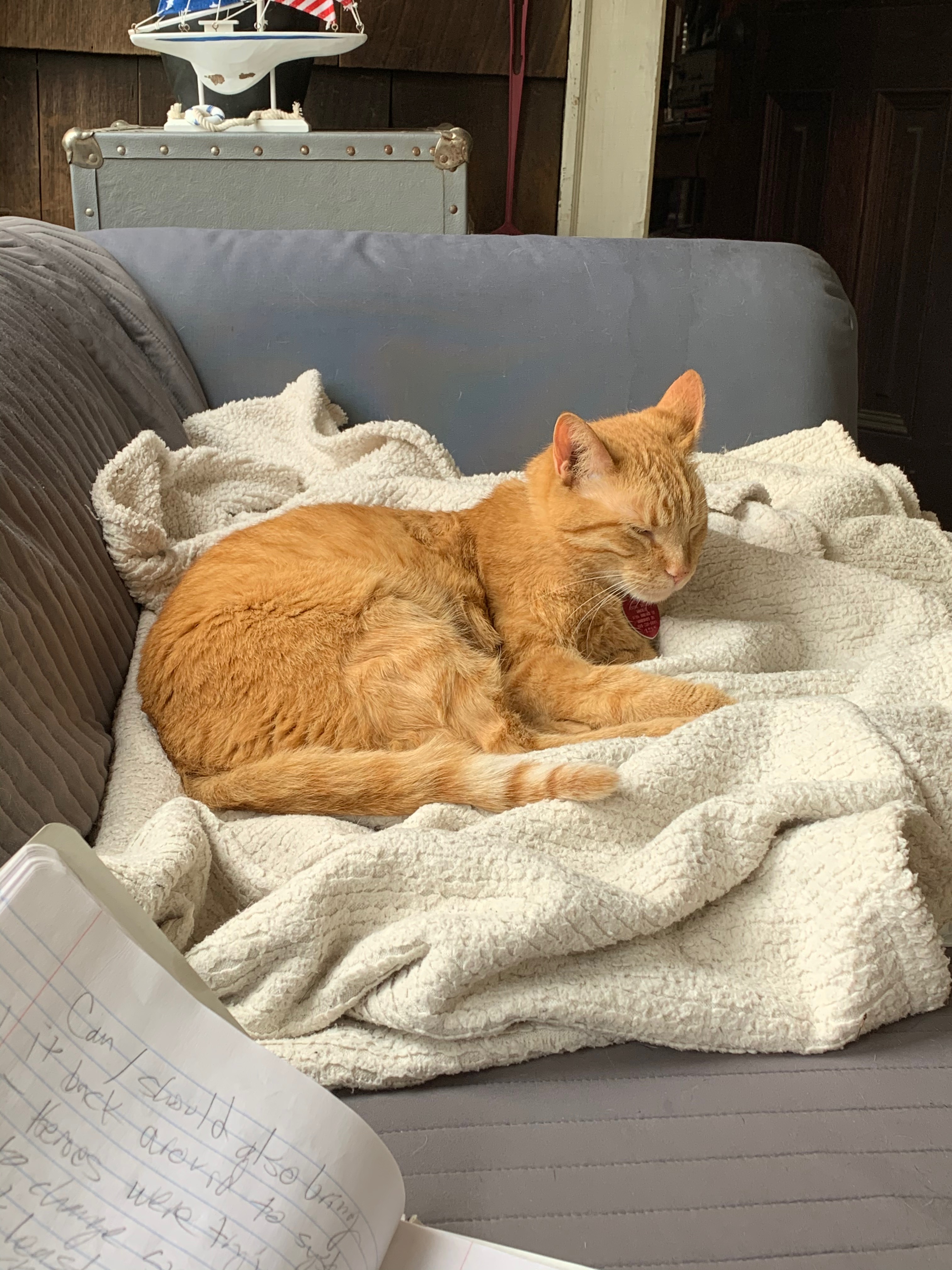 “Jasper came into my life because of the ex,” Jennifer explained. He’d been a rescue from another county’s “we kill ‘em all” shelter, which was stressful enough, but soon after his arrival, her ex-partner found another kitten on the side of the road, which relegated poor lil’ Jasper to “third wheel” status in that human-feline lovefest. When Jennifer’s relationship ended in 2013, her ex left and Jasper stayed. Over the years the pair gradually became friends, but as I noted, he didn’t quite know what to think when a burly, middle-aged male Northerner showed up. If I was going to make friends with Jasper, I’d need to use the same approach I was taking with Jennifer: patience, openness, respect for boundaries, and compassion.