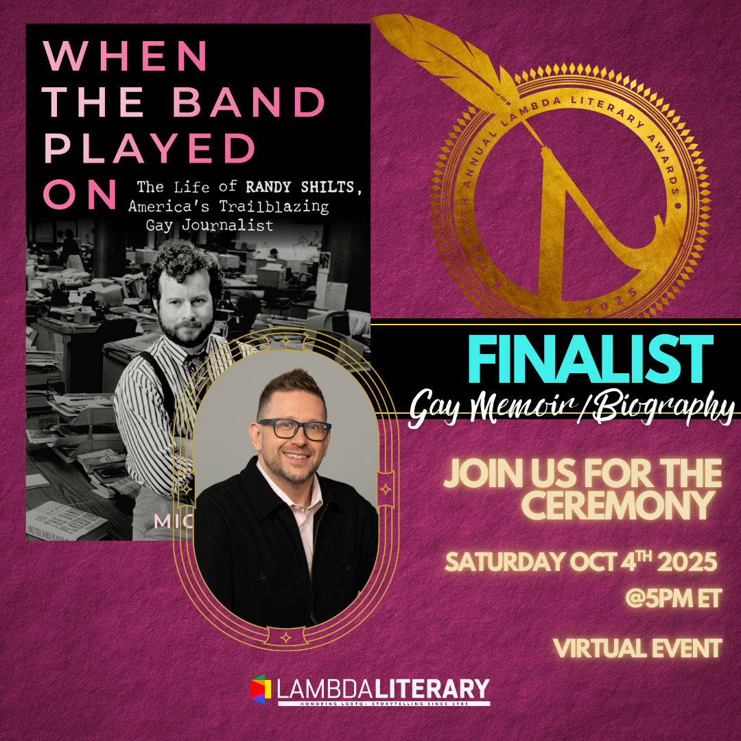 I am so excited that WHEN THE BAND PLAYED ON is a finalist for the Lammy Award in Gay Memoir/Biography! We’ll find out together who the winners are at the virtual ceremony on October 4th. Check out the rest of this year’s finalists here. 📚✨ #Lammys2025 #Lammys